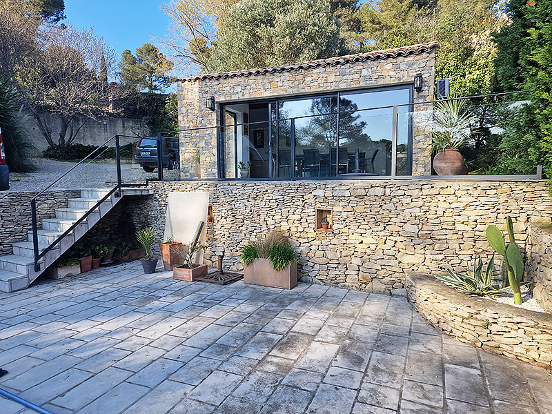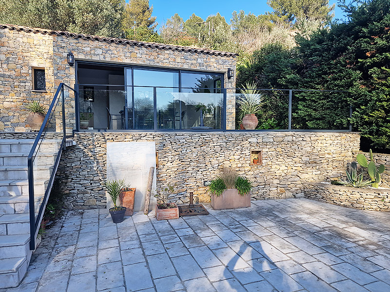 Sur cette réalisation, CMT Métallurgie a conçu et fabriqué des gardes corps vitrées sur une terrasse.