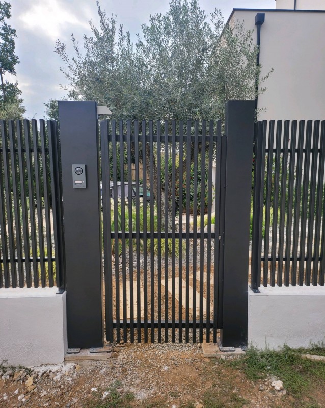 Le portillon a quant à lui une serrure encastré électrique pour une ouverture a distance, deux gros poteaux viennent ce greffer pour l’embellir.