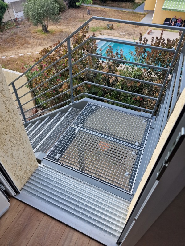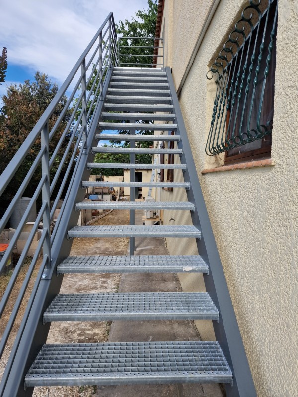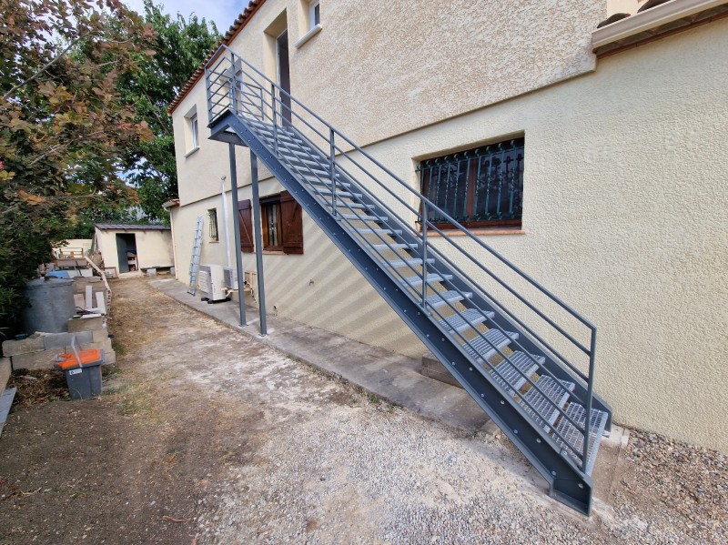Sur la commune de Lattes (34), l’un de nos clients Mr E. avait besoin pour l’élévation de sa villa d’un escalier de service plutôt large et solide.