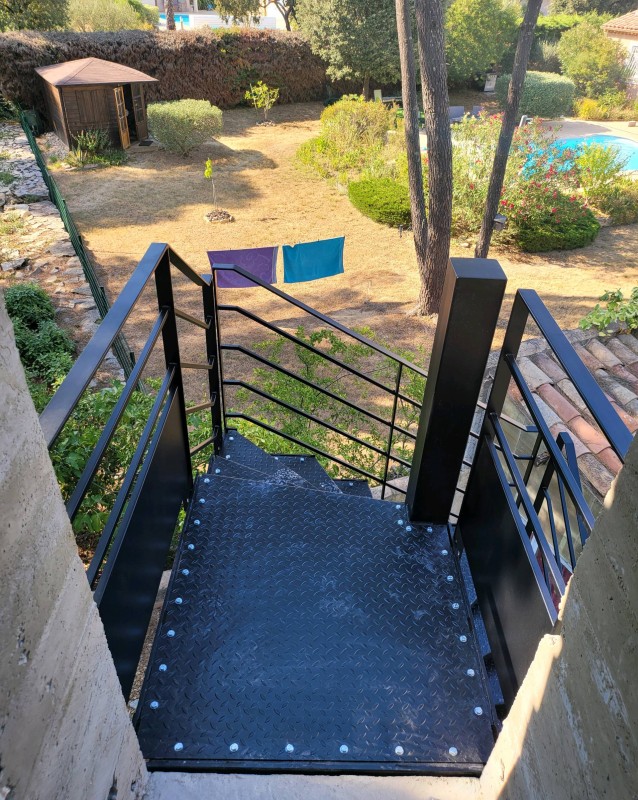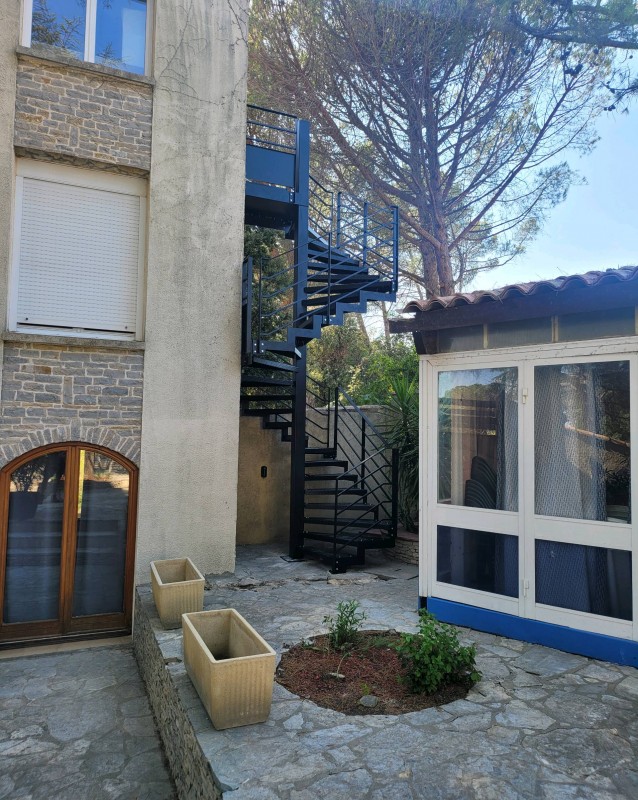 Sur la commune de nages et Solorgues , notre équipe a conçu, fabriqué et posé cet escalier colimaçon haut de 2 étages.