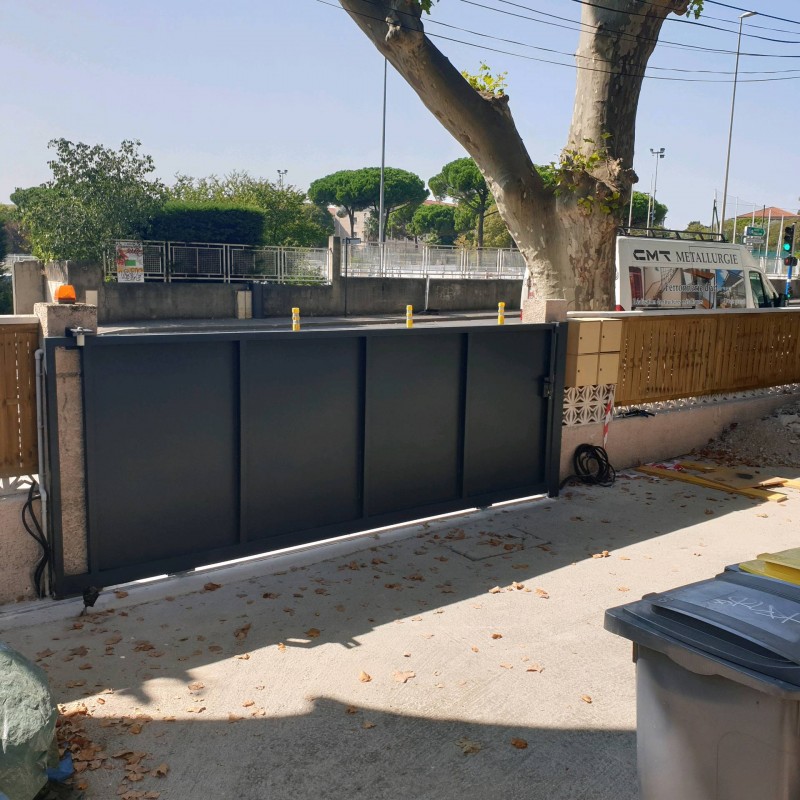 Réalisation d'un portail coulissant en acier thermolaqué à Montpellier.
